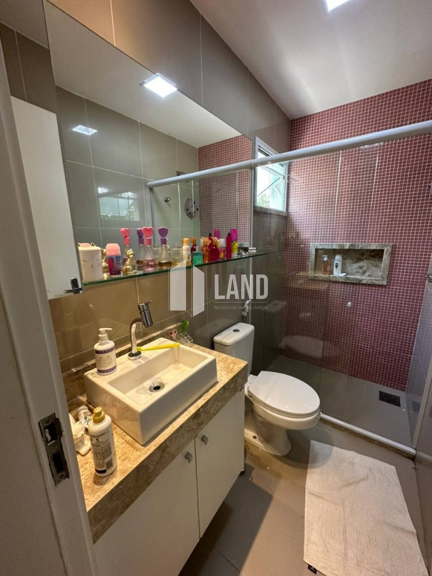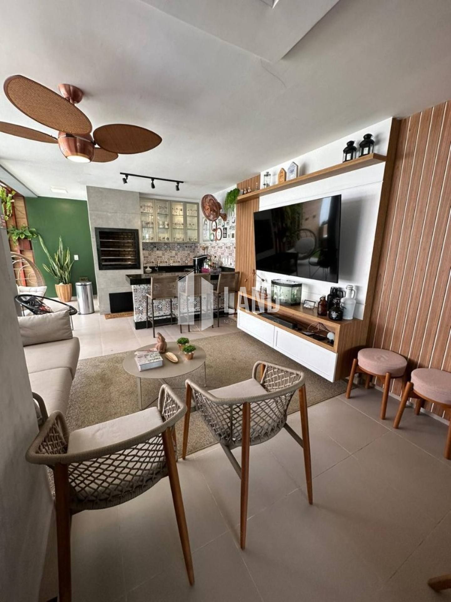 Casa à venda em condomínio fechado, com ampla sala de estar integrada à sala de jantar, proporcionando conforto e elegância. Cozinha espaçosa com móveis planejados.