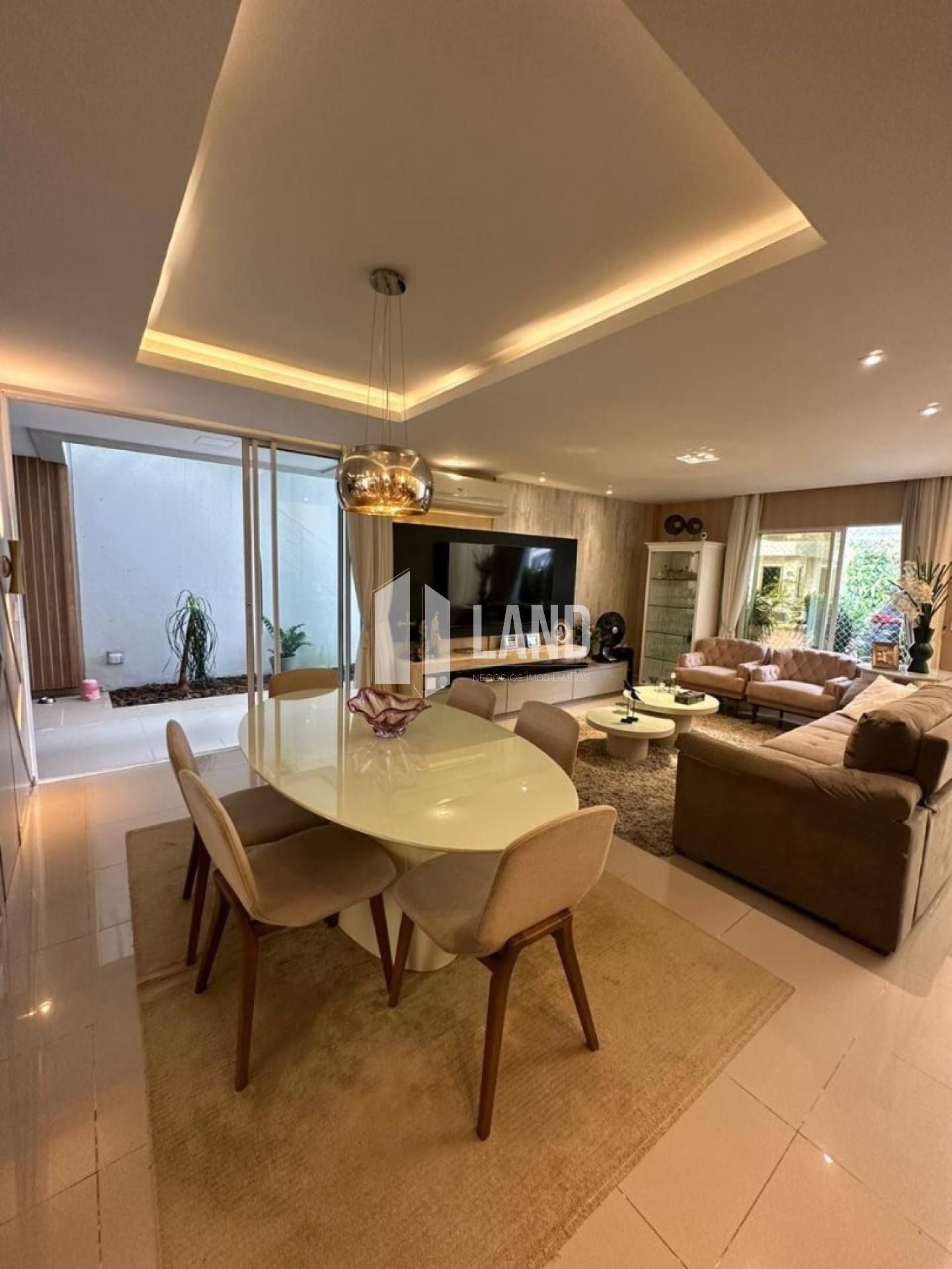 O imóvel conta com jardim de inverno, projeto de iluminação, decoração sofisticada, lustres e finos acabamentos em todos os ambientes.