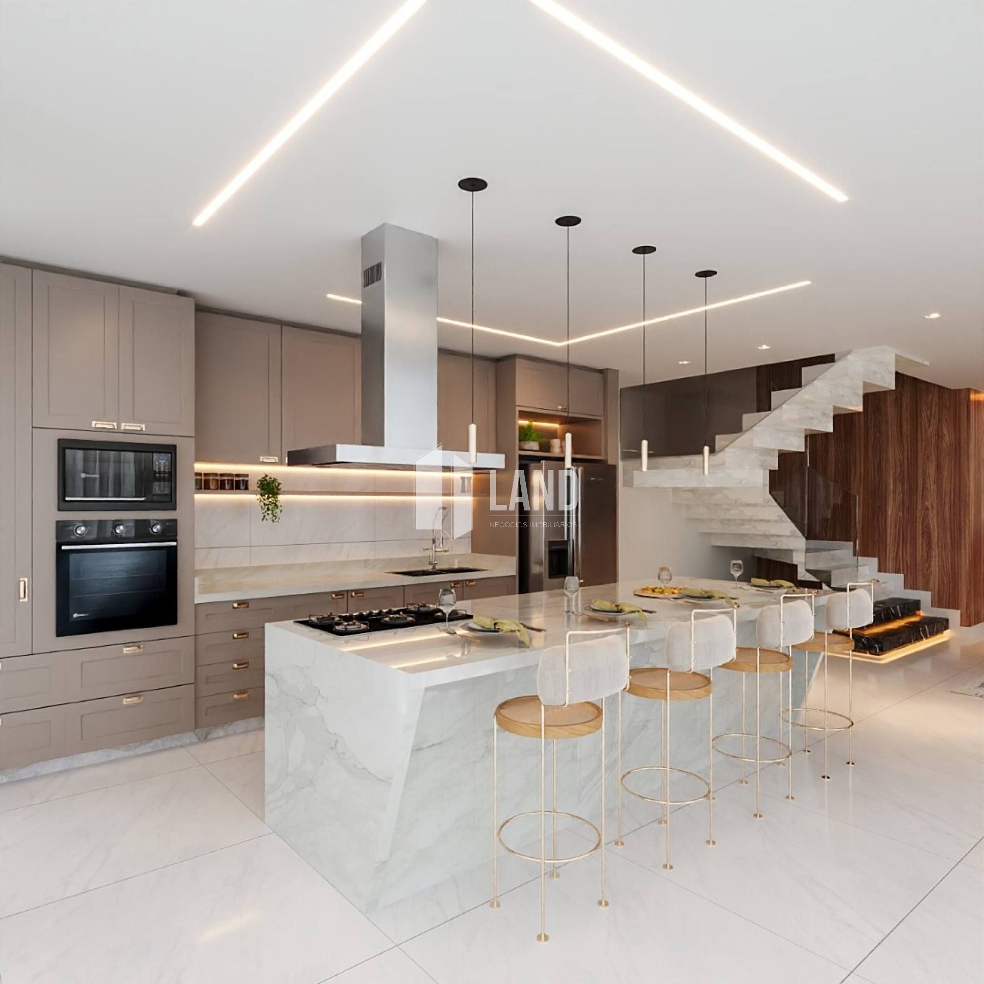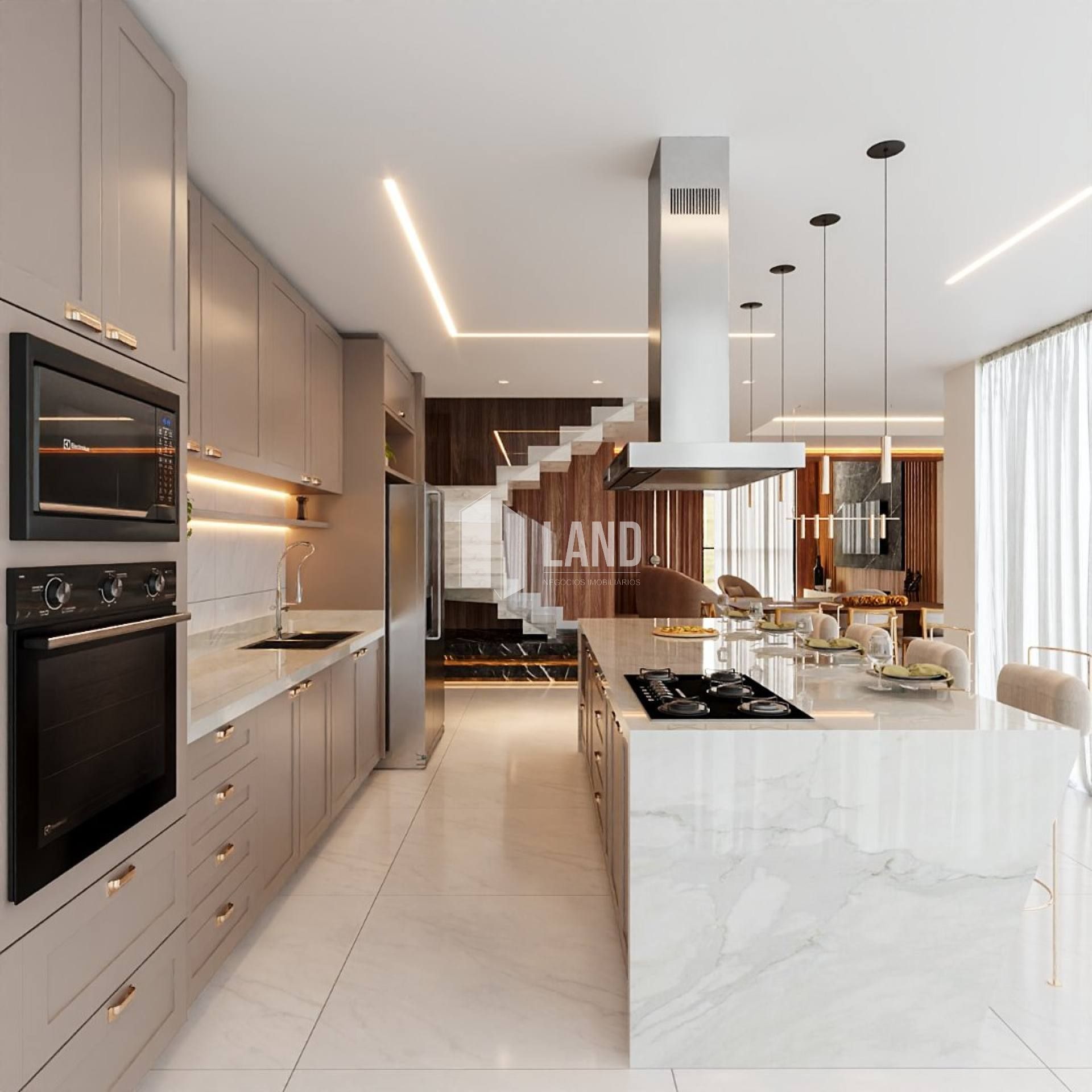 A cozinha, entregue semi mobiliada, possui cooktop, coifa, forno, geladeira e micro-ondas, unindo funcionalidade e bom gosto. Integrada à área gourmet, oferece um espaço ideal para momentos de lazer e convivência.